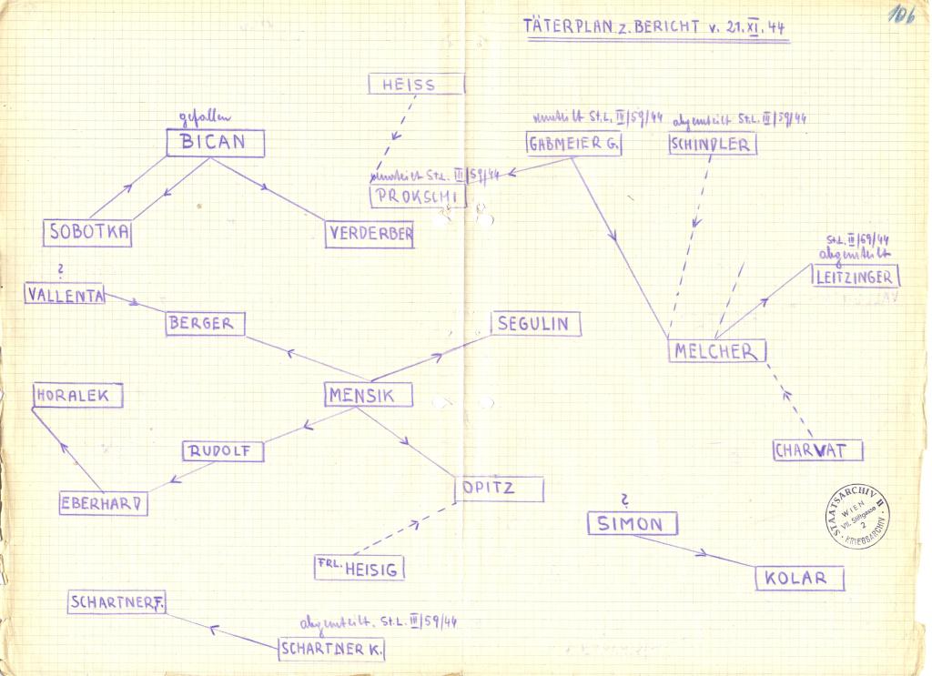 »Die […] Tätigkeit der Angeschuldigten hat offensichtlich den Zweck gehabt, die Organisation des KJVÖ im Wiener Gemeindebezirk Simmering wiederherzustellen und hierdurch die nationalsozialistisch erzogene Jugend mit den Irrlehren des Kommunismus bekannt zu machen sowie überdies durch Verbreitung von Flugblättern die Bevölkerung in diesem Bezirke, […] gegen die nationalsozialistische Regierung aufzuhetzen und für den Kommunismus zu gewinnen […].«